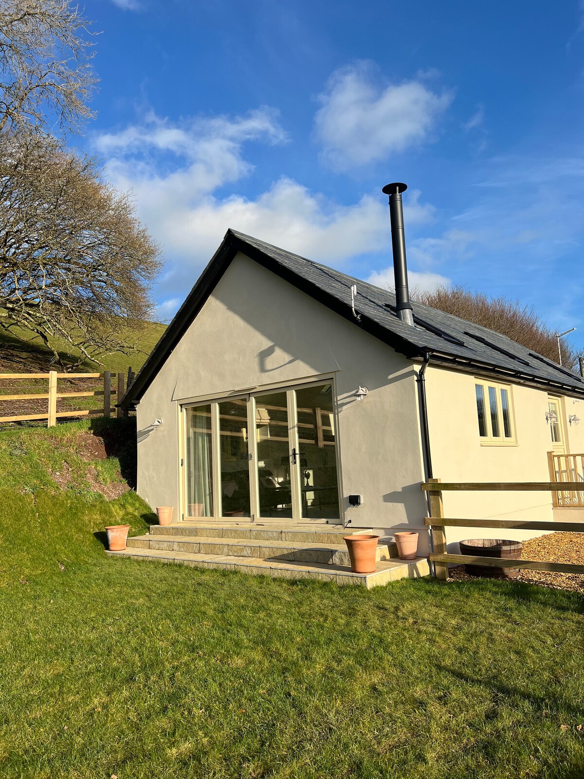 Təbiətin əhatəsində Şimali Devonun mərkəzində yerləşən bu romantik məkanın gözəl şəraitindən zövq alın. Bu sifarişli Çobanlar daxması öz çayı olan 3 akrlıq sahədə yerləşir. Yalnız komfortu nəzərə alaraq tikilib ki, siz giriş atəşinin istiliyi ilə istirahət edə, kitab oxuya və ya kral böyüklüyündə çarpayıda televizora baxa biləsiniz. Bura hələ də qürub mənzərələri, ulduzlu gecə səmaları və çayın səsində sevimli şəxslə odunla qızdırılmış cakuzidə dincəlmək üçün yerdir.