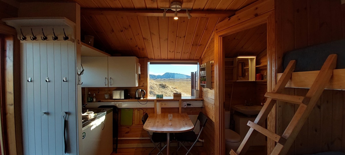 Kabinədən Fljótshlíð dağ silsiləsi və Tindfjallajökull buzlağına doğru gözəl mənzərə açılır. Cənubi İslandiyaya səfər edirsinizsə, kabinə qalmaq üçün mükəmməl yerdir. Şəlalələr, buzlaqlar, qara çimərliklər və vulkanlar kimi bir çox əsas turistik yerlərin yaxınlığındadır. Kabinə dörd nəfərlik yerdir. Bir yataq otağında çarpayı, qonaq otağında isə ikiqat çarpayı var. Kiçik mətbəx və yaşayış sahəsi, eləcə də duşu olan hamam, yaxşı internet və smart TV