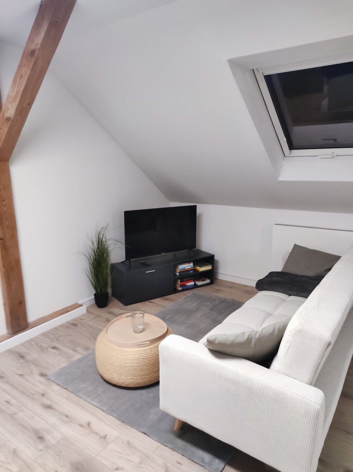 Die Ferienwohnung befindet sich im Dachgeschoss meines Hauses in Hain im Spessart. Das Haus selbst ist am Hang gebaut, dadurch ist die Haustür über 30 Treppenstufen zu erreichen. Im Haus selbst geht es dann noch 15 Stufen nach oben. Die Anzahl der Gäste ist hier auf 5 begrenzt. Falls mehr Gäste kommen möchten, bitte eine Anfrage schicken. Nach Absprache ist es möglich, dass mehr Gäste kommen. Es kann noch ein Doppelluftbett aufgestellt werden.