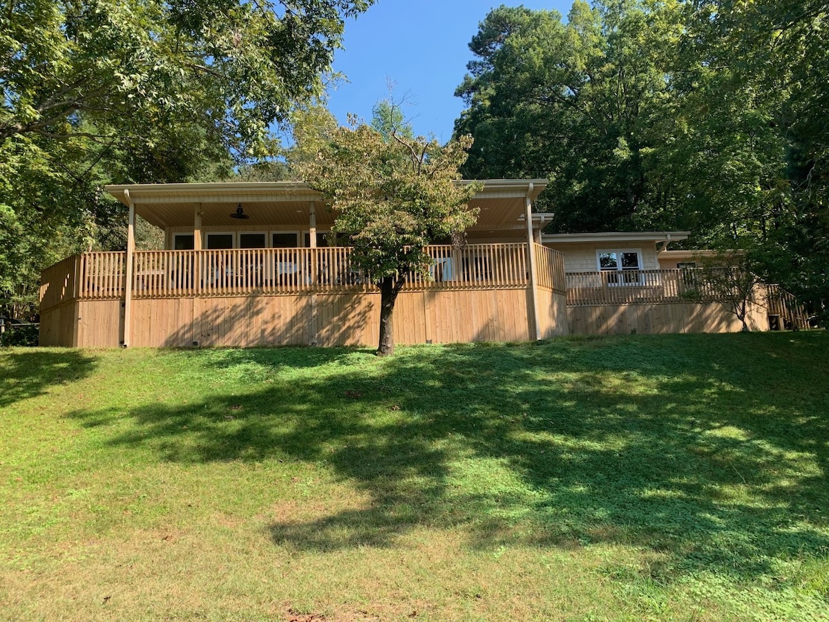 Kick back and relax in this calm, stylish space. Come enjoy beautiful sunsets on your private deck while relaxing in a hot tub or sitting around the fire pit. Enjoy this cozy retreat only 1 mile from RTJ golf course, and 3 miles to the closest boat ramp. This home offers a kitchen with a coffee bar and wine cooler, interior/exterior TV, spacious walk-in shower and claw foot tub. We also offer boat and RV utility hook ups. Enjoy a wide variety of eating and entertainment 10-15 minutes away.