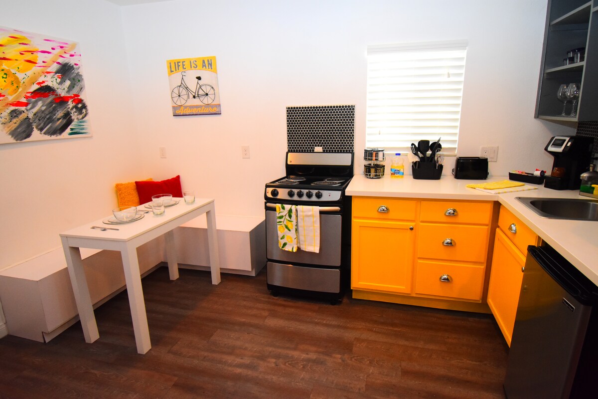 Las-Veqas Strip yaxınlığında yerləşən qeyri-adi, rahat və kiçik şəxsi evdən zövq alın. Bu düşünülmüş şəkildə dizayn edilmiş məkanda 1–2 qonağın rahat qonaqlaması üçün lazım olan hər şey var. Əmlakın arxa hissəsində yerləşən və 3 başqa mənzillə birlikdə əlavə məxfilik təmin edir. Parkinq daxildir. İçərisində mikrodalğalı soba, kiçik soyuducu və sadə yeməklər bişirmək üçün plitə olan quru kiçik mətbəx var. Evdə həmçinin ayrıca veranda və açıq havada dincəlmək üçün geniş həyət sahəsi mövcuddur.
