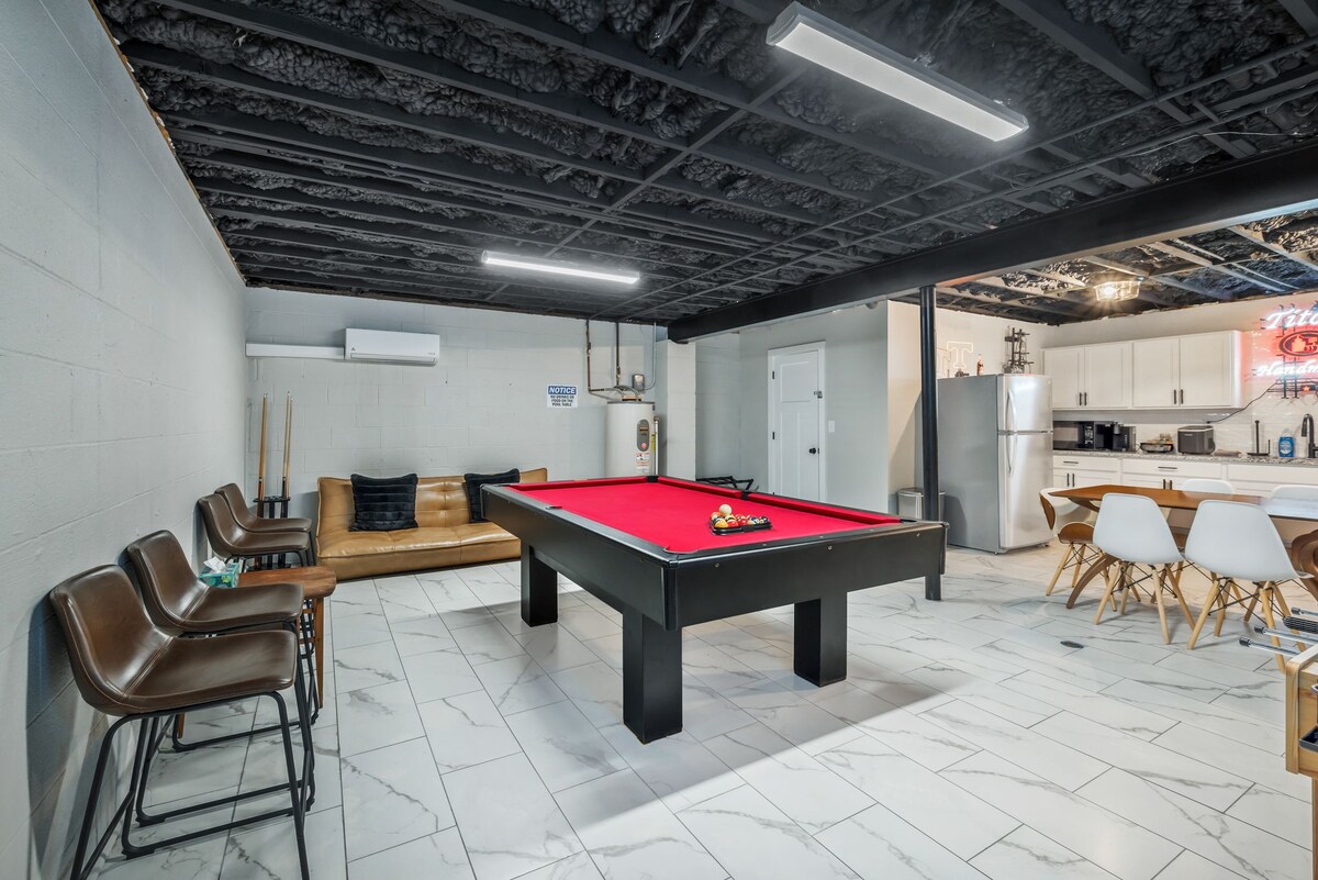 Neşvilldən 20 dəqiqə, hava limanından isə 30 dəqiqə məsafədə yerləşir. ✈️ Bu məkan həqiqətən bənzərsizdir. Hər kəsin zövq alması üçün bir şey var. Bütün vacibləri olan tam mətbəx, hovuz masası, futbol masası və dartları olan geniş bar mövzulu otaq! Və qapınızın çölündə arxa verandada oturan cakuzi! Müxtəlif imkanlar və masaüstü oyunlar ilə heç vaxt edilməli şeylərdən qaçmayacaqsınız.
