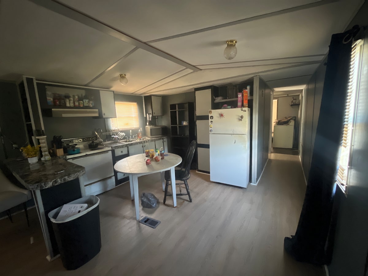 Welcome to your home on the road! Our mobile home is fully equipped with everything you need to feel comfortable and cared for during your travels. Whether you’re stopping through for a night or staying longer, you’ll find all the essentials waiting for you Rules : 1 . clean up after yourself please 2. Be respectful to the place 3. WiFi will be posted somewhere