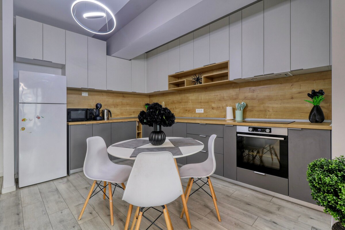Herăstrău Parkının bir neçə addımlığındakı bu dəbli 1 otaqlı mənzildə qeyri-adi yaşayışı təcrübədən keçirin. Düzdə müasir dizayn, yüksək səviyyəli örtüklər, geniş yaşayış sahəsi və tam təchiz olunmuş mətbəx var. Kafelərə, gözəl yeməklərə və şəhərin canlı şimal tərəfinə asan girişi olan biznes və ya istirahət qonaqlamaları üçün mükəmməldir. Təhlükəsiz bina, sürətli Wi-Fi və premium komfort.