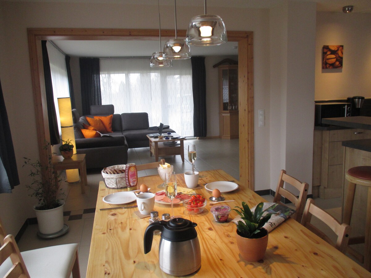 Öz girişi olan 60 kvadratmetrlik mənzildə tətil üçün lazım olan hər şeyi tapa bilərsiniz. Maksimum 1 ikinəfərlik çarpayı + 1 divan çarpayı 4 nəfər - evin qarşısında parkinq Bir neçə dəqiqə sonra artıq piyada meşədə, 588 metr yüksəklikdə Mişelsberqdəsiniz və bütün istiqamətlərdə gəzə bilərsiniz. Avtomobillə Ahr, Ruhrsee və ya Phantasialand Brühl-də yaxşı bir yarım saat ərzində Nürburqrinqə çata bilərsiniz. 10 km məsafədə alış-veriş. Məsləhətləşmədən sonra itlər qarşılanır.