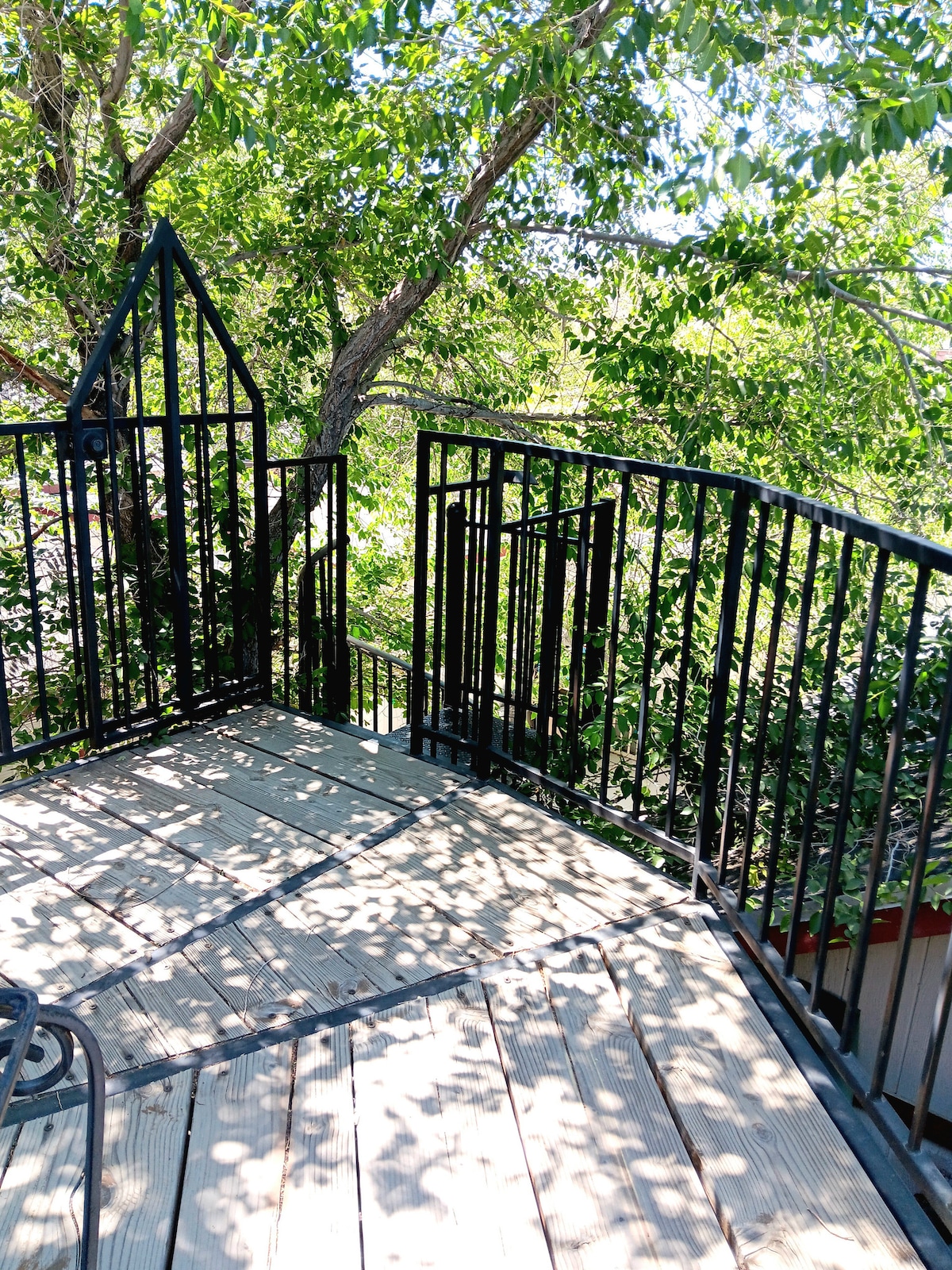 We specialize in creating artistic escapes for our guests. Entire Private artist-designed Guest Suite with Private Entry and NO SHARED AREAS. Suite is ATTACHED to a 2-unit Home. Relax in the King bedrm with work station, TWO Roku TVs, large sectional couch, dining table, small kitchenette (No Sink; Mini-Dishwasher), full-size futon, and bathroom with shower. Suite shares walls with the other unit. You may hear other guests ABOVE you. Home is mostly very quiet. NO Laundry or Garage.