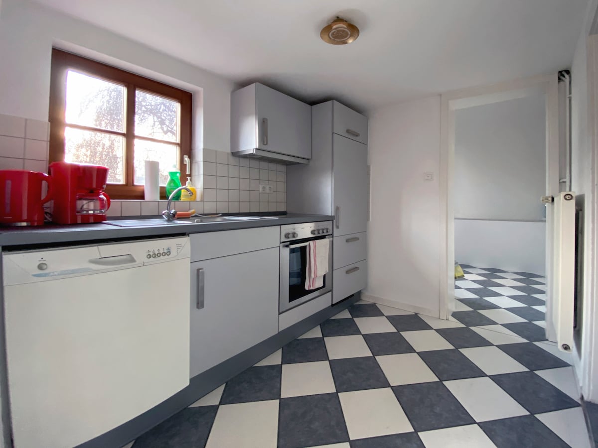 Qatar stansiyası və qəsrin yaxınlığında yeni tikilmiş zirzəmi mənzili. Soba, soyuducu, qabyuyan maşın, qəhvə maşını və toster ilə tam təchiz olunmuş mətbəx sizə yemək sahəsində və ya qaz manqalı olan böyük terrasda kulinariya axşamları üçün lazım olan bütün sərbəstliyi təmin edir. Yeni divan çarpayı tam döşəklə təchiz olunub. Prime, Disney, rtl + və Alexa ilə SmartTV istirahəti müşayiət edir. Hamam otağında yağış duşu, sidik və paltaryuyan maşın var.
