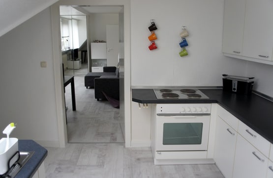Gemütliche und ruhige Wohnung mit rustikal-modernem Charme, in einem historischen Fachwerkhaus. Nichtraucher, aber Dampfen und Verdampfen erlaubt. Raucherbereich am Eingang. Wind- und regengeschützter Eingangsbereich, mit Lagerfläche für Sportausrüstung und nasse Kleidung. Haustiere erlaubt. Die Wohnung ist nicht behindertengerecht und es gibt einige kleine Stufen, sowie eine Treppe. Die Deckenhöhe in der Küche und in einem der beiden Schlafzimmer entsprechen einem alten Fachwerkhaus.