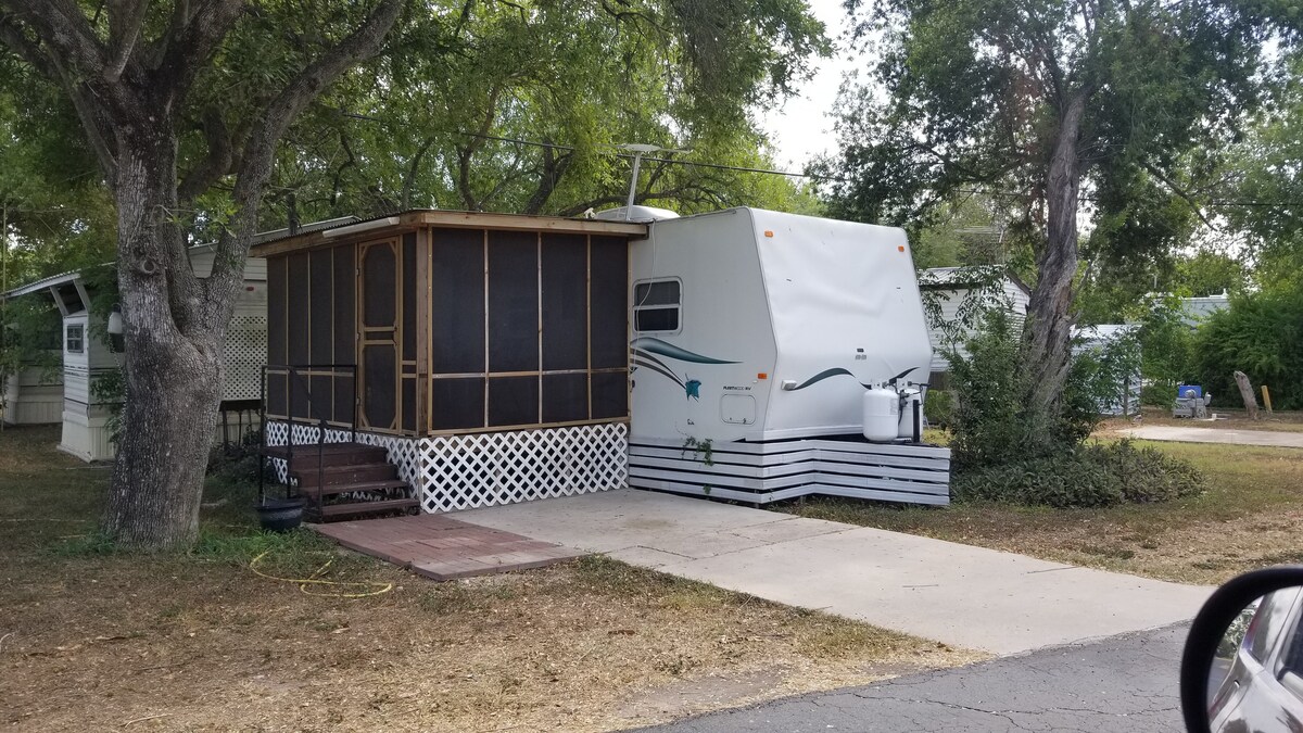 Charming Trailer Getaway in Mission Lot 137 The Wilderness Comes completely equipped -Comfortable Queen Bed! -Fresh Linens and Towels! -Dishes, Pots and Pans! -Flat Screen TV!Local TV -Cold A/C and Warm Heat! -No Pets -No Smoking