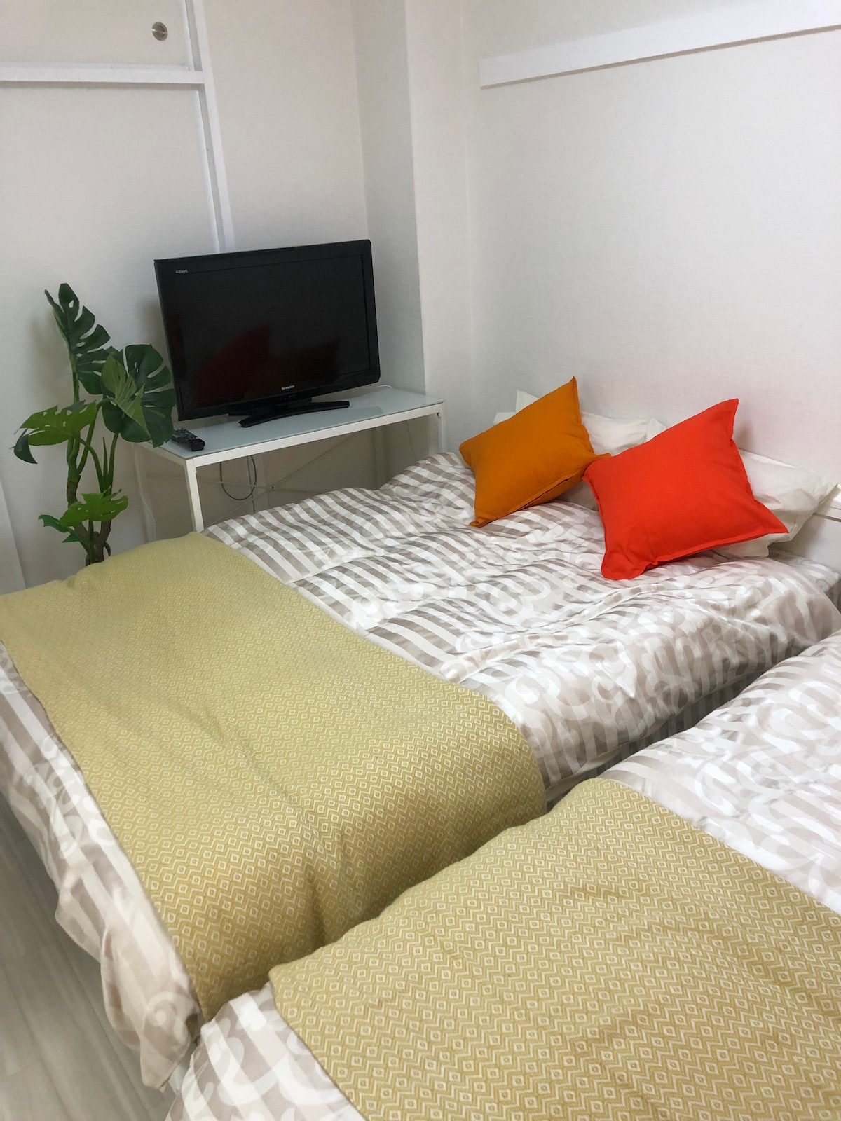 ーOsaka City Yodogawa-ku Higashi-Mikuni|Calm and Spacious Unmanned Facility for 2 Peopleー Room Features ・2 single beds × 2 (suitable for 2 guests) ・Spacious and calm space ・Fully equipped kitchen utensils (cooking tools and tableware included) ・Washing machine available (convenient for long stays) ・Unmanned self-check-in for easy entry and exit Surroundings & Access ・About 10 minutes on foot to Higashi-Mikuni Station ・About 15 minutes by train to Osaka Station and Umeda area