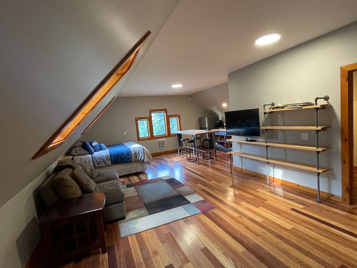 Bu, evin ikinci mərtəbəsində yerləşən ayrıca nömrədir. Ayrıca giriş. Sahiblər aşağı mərtəbədə yaşayır. Dağ mənzərəli əla mövqe. Nəzərə alın: 1) Mətbəximiz tam təchiz olunub, lakin ənənəvi soba əvəzinə isti boşqab var. 2) Tam ölçülü qonaq otağı əvəzinə mətbəxin yerləşdiyi eyni ərazidə televizoru olan kiçik oturma sahəsi var. 3) Qonaqların arxa həyətə/verandaya girişi yoxdur.