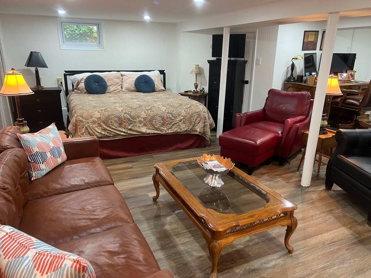 Located near the village, hiking trails, Jones Farm, Hudson River, Woodbury Commons, West Point and more. The studio is ground level with a private entrance. The kitchenette incudes a convection toaster oven, a hot plate cooktop with pots/pans, light kitchenware, coffee maker, & fridge. Also provided: TV, Roku stick, Wi-Fi, AC/electric heat. (No cable) This is our home. The use of illicit drugs, smoking and excessive alcohol is prohibited. We live here with kids/dogs so you may hear us moving