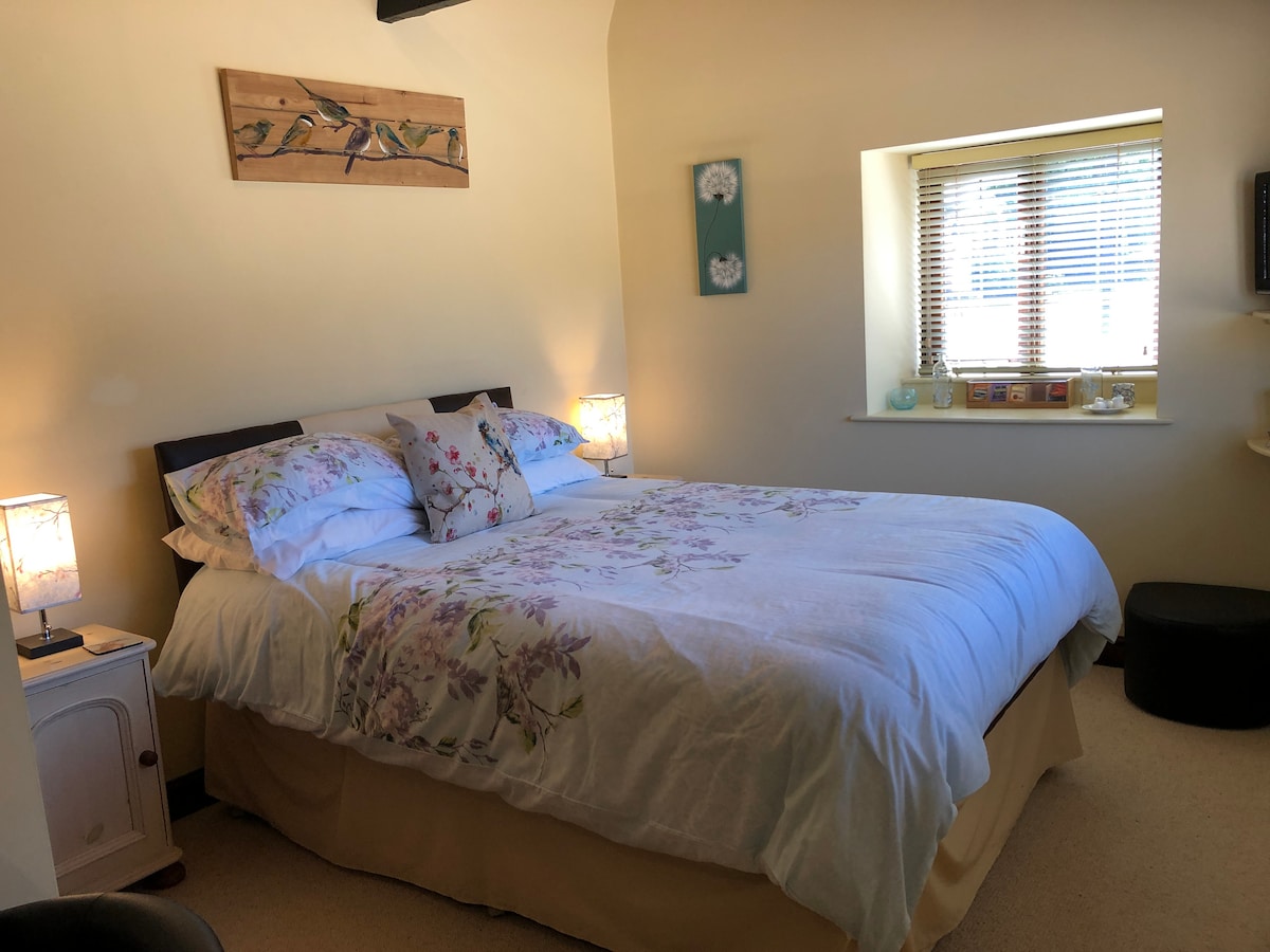 The Orchard Studio is the recently renovated annex to the Gate House which is on the grounds of The Stable House, a family home converted in 1970 from a Victorian stable block. It is a double bedroom studio with ensuite shower room and separate living room with kitchen facilities including oven, hob, microwave and fridge. There are sliding doors onto a private patio with wonderful views over the orchard, and local countryside; there is access to over 20 acres of parkland, paddocks and woodland