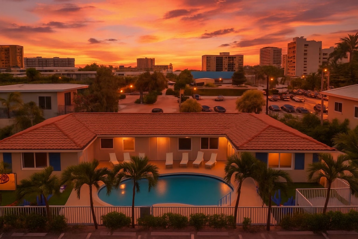Paylaşılan günəş enerjisi ilə qızdırılan üzgüçülük hovuzu olan ✔️kiçik və sakit dördayaqlı kompleks 👙 ✔️Pompano Biçin mərkəzində yerləşir (çoxsaylı çimərliklər, restoranlar, barlar, alış-veriş mərkəzləri və Pompano Çimərliyi Pier yaxınlığında) 🏖️ ✔️Mənzildə iki geniş yataq otağı və iki hamam otağı, tam mətbəx və rahat ab-hava var 🛏️ ✔️Əmlaka yaxşı baxılır və ailələr, qrup səyahəti və uzaqdan işləyənlər üçün mükəmməldir 👪 ✔️Mənzildə sürətli Wi-Fi, bütün otaqlarda düz ekranlı televizorlar, qabyuyan maşın və paltaryuyan + quruducu var 🛜 ✔️Parkinq 🚘