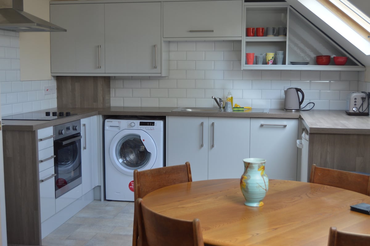 The annex, detached from the main house, is set within a beautiful landscaped garden. The spacious bedroom has a double bed and a Smart TV (you will have access to Sky, Netflix, Apple+, Paramount) the bathroom has a walk-in shower. The separate living area has a dining table, sofa and small fridge. Tea and coffee making facilities, cutlery and crockery (for takeaways etc.) are provided. Parking is at the front or side of the house. There is access to strong WiFI . Pets are welcome.