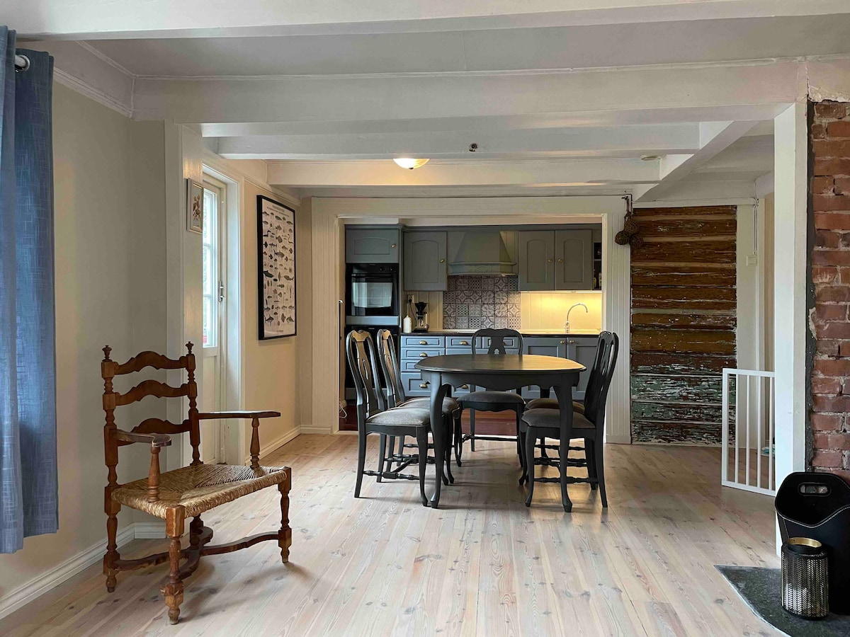 Günəşli bağı və eyvanı olan füsunkar köhnə cənub evi. Şəhərin mərkəzində piyada məsafə. Bir avtomobil üçün otaq. Ən azı 4 gecə Arendalsuka ərzində bütün həftə üçün icarəyə verilir. Yaşayış sahəsi təxminən 80 kvadratmetrdir və iki yataq otağından, çardaqdan, hamam otağından, camaşırxanadan və açıq mətbəx məhlulu olan qonaq otağından ibarətdir. Yaşayış yerində dəniz parıltısı var və o, şəhər fyorduna 80 m aşağıdadır. Aptek, ərzaq, kafe və s. ilə ticarət mərkəzinə getmək üçün cəmi 5 dəq.