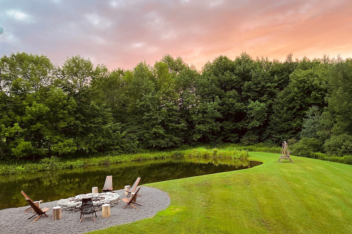 Welcome to PostBeamLove. An idyllic private secluded 4-season dream 10-acre getaway. Stay and indulge in complete comfort in a fully converted 1840s Dairy Barn with indoor saltwater hot tub & sauna with mountain views, overlooking the northwestern Catskills in the heart of Roxbury. The property features a spring-fed pond, gazebo, stream, & a neighboring farm. A 10-min drive to Plattekill Mtn, one of the best-kept secrets for avid skiers. Or go hiking, have a picnic, even golf.