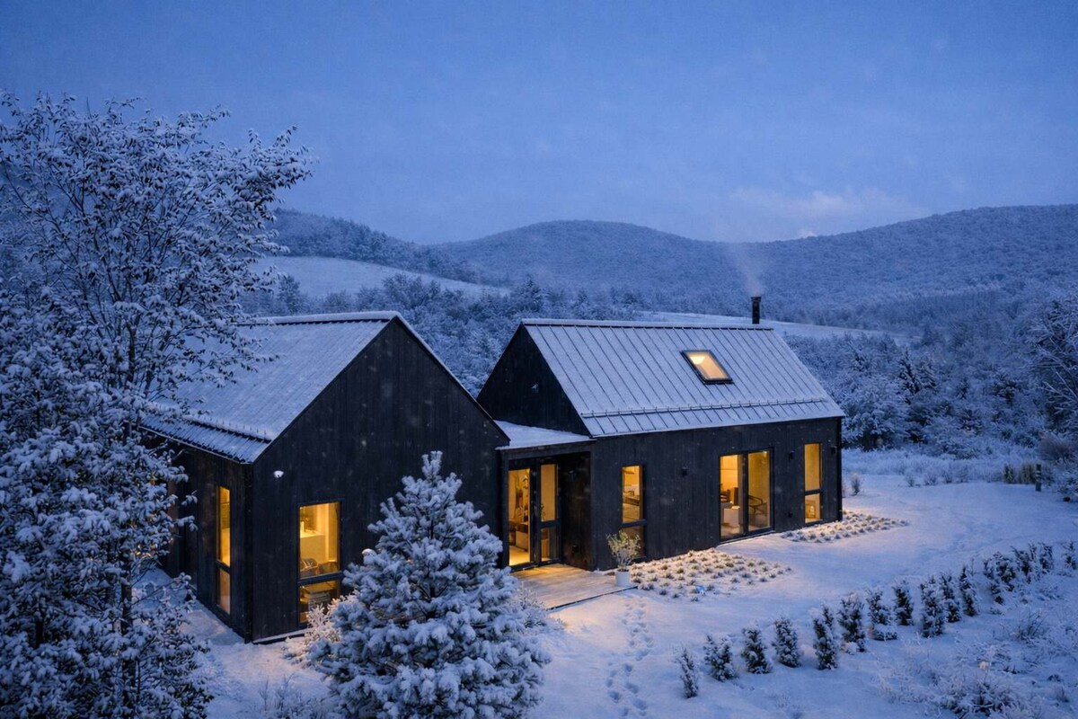 Modern cabin on the mountains of the western Catskills. There is a full kitchen, dishwasher, washer/dryer, an assortment of books, board games, puzzles, and an indoor wood-burning stove. There is reliable, high-speed fiber-optic wifi. There is no TV. Note: In winter (Dec-March at least) you will NEED a vehicle with AWD or 4WD to reach the cabin. The final .75 mile of the drive is a dirt road with a couple of hills that could be difficult for an FWD vehicle to safely get up or down.