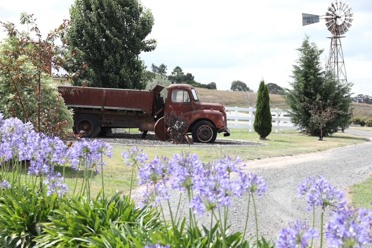Hawthorn Hill. Kənd əzəməti ilə əhatə olunmuş 10 akrlıq hobbi fermasında yerləşən dəbli özünə məxsus studiya. Cowriga Creek və Mt Canobolas və Mt Macquarie istiqamətində süpürgə mənzərələri. Gözəl Kinq çarpayısı (istəyə görə mövcud olan əkiz sinqllar) Tam qurman mətbəxi və vanna otağı. Tam səhər yeməyi və ya şampanlar təmin edilir. Atlara, forma inəklərinə və toyuqlara baxın. Möhtəşəm ayrıca odadavamlı və açıq havada hamam. Millthorpe tarixi kəndinə və bütün restoranlara, kafelərə, zirzəmi qapılarına və butik mağazalarına cəmi bir neçə dəqiqə.