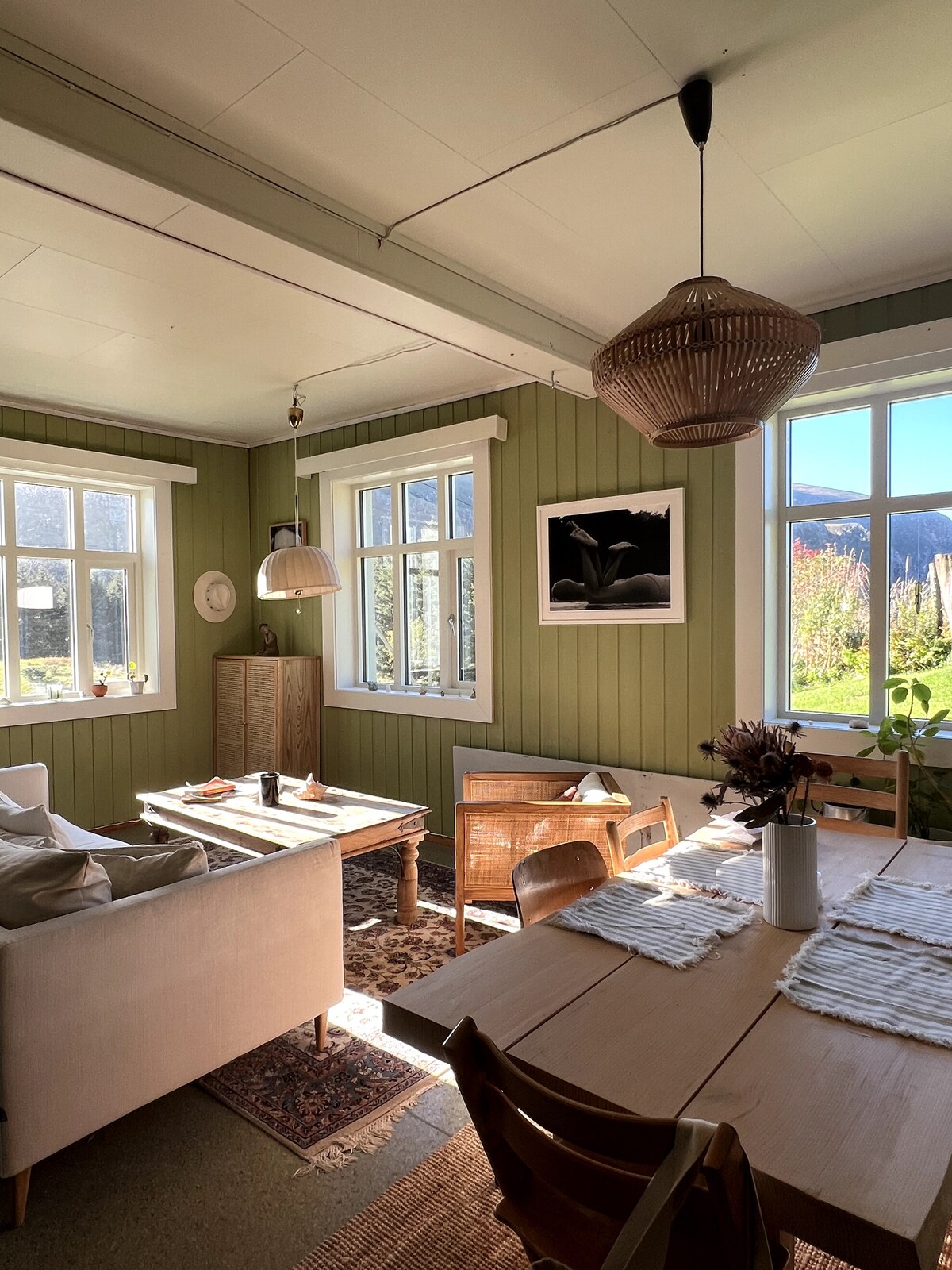 140-year-old house with soul and atmosphere in the center of Leikanger. A feeling of coming home. 1 minute to the grocery store and restaurant. Well-equipped with washing machine, dryer, and dishwasher. 2 bathrooms. Suitable for both adults and families. A steep attic staircase makes the house less suitable for those with mobility issues. A great starting point for hikes in the mountains and along the shore in a unique landscape.