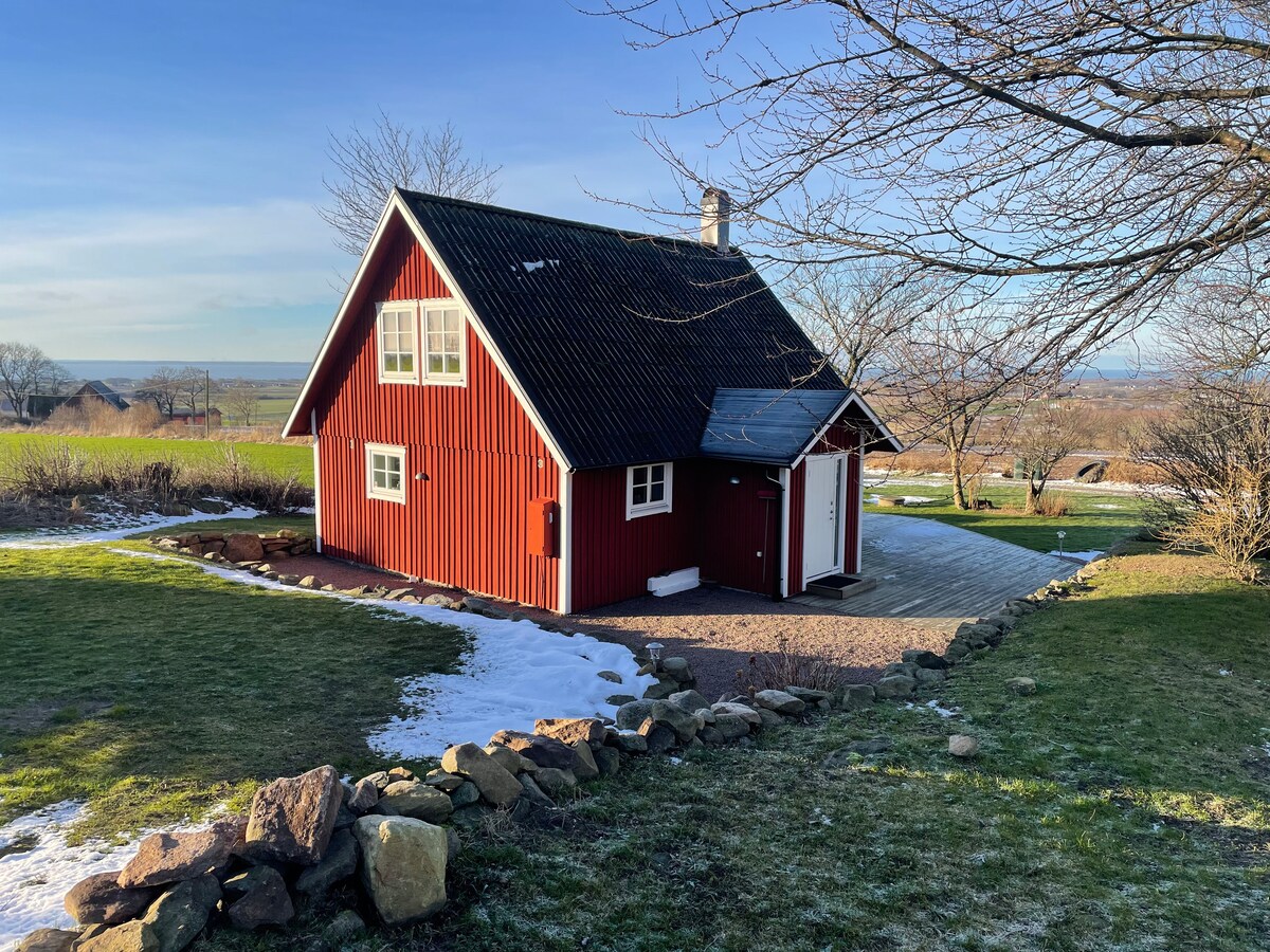 Öresund və Kullabergə baxan böyük və sevimli cənubla üzbəüz terrası olan kottec. Böyük yürüyüş və qayalıq hamamı olan təbiət qoruğuna yaxın. - 120 sm-lik çarpayı + divan çarpayı (2x80sm) Maksimum 2 böyük və 2 uşaq və ya 3 böyük yerləşdirilə bilər. - Mətbəx dəsmalları, mikrodalğalı soba ilə tam təchiz olunmuş mətbəx - Duşu olan vanna otağı - Wifi - paltaryuyan maşın - manqal
