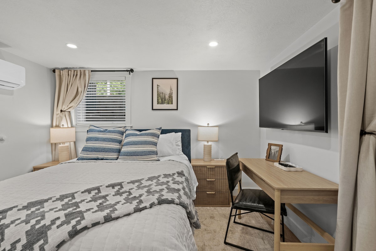 🏔️ 25 min to Alta/Snowbird 🛌 2 Queen Beds + Daybed, Sleeps 5 🚶♂️ Walk to restaurants & shops You’ll be less than a 30 minute drive to four world-renowned ski resorts (Alta, Brighton, Solitude, Snowbird) and walking distance to food trucks, restaurants, boutiques, a spa, Walgreens, and an upscale local grocery store. You’ll have your own washer and dryer, two televisions, a large couch, and a full kitchen. There is also a shared backyard with a large lawn, shade, and a view of Mt. Olympus.