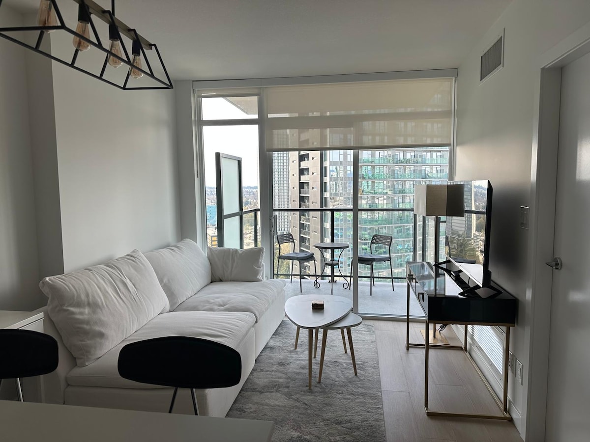 Welcome to our cozy unit in Surrey! This modern apartment offers a south-facing view of the city and mountains,along with top amenities such as Skyline gym and BBQ garden. Inside the unit, we offer stylish new funitures.There are two queen beds inside bedrooms. Additionally, there is an extra sofa bed available to accommodate additional guests. Location is exceptional ,within 5min walking distance you can reach Surrey Central Station,Central shpping mall,City Hall and SFU Douglas College.