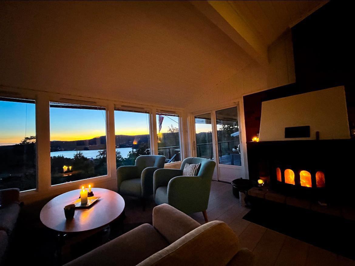Gözəl fjord mənzərəsi olan parlaq ailə evi