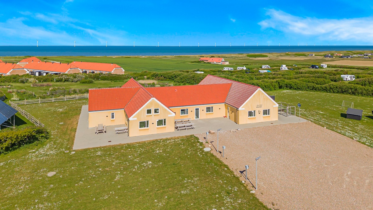 Illeborgvej 35, Fjand Holiday paradise by the North Sea – pool, spa, activities, and space for 22 people Large holiday home located just 1,200 meters from the North Sea, set on a huge 5,700 m² natural plot. Here you get plenty of space, peace, and activities all in one place – ideal for multiple families or larger groups of friends. The house offers 8 comfortable bedrooms, 4 modern bathrooms, and 6 loft sleeping spaces, accommodating up to 22 people. Pool, spa, and relaxation Large pool area with a 20 m² swimming pool, counter-current system, and water slide. In addition, there is a spa for 6 people and a sauna – perfect after a day at the beach. Outside, you will find a new wooden terrace with a jacuzzi and a cold-water tub. As a guest, you also get free access to Hvide Sande Swimming Hall for up to 22 people. Perfect if you want to try even bigger water slides, diving boards, and multiple pools – or simply enjoy an extra experience during your stay. Plenty of activities – indoors and outdoors Indoors, you’ll find an activity room with billiards, table football, shuffleboard, table tennis and darts. There is also a new home cinema with real cinema seats, a 90” TV and a sound system – perfect for movie nights, gaming on the PS4 with four controllers, or enjoying music. Outside, there is mini golf, a volleyball court, football goals, a trampoline, strength training equipment, swings, a sandbox, badminton, cornhole, swingball, mooncars, ladder golf, and more – ensuring entertainment for both children and adults all day long. The house also features a fenced area for dogs, so your pet can easily join the holiday. Plenty of space for togetherness Open-plan kitchen and dining area with a large dining table for the whole group, as well as a cozy sofa area. The kitchen is fully equipped with 2 ovens, 2 hobs, 2 dishwashers, 2 refrigerators, and a freezer – ideal when you are many. Comfort all year round An energy-efficient and eco-friendly house with an air-to-water heat pump and underfloor heating throughout, ensuring a comfortable temperature all year while keeping heating costs low – even in winter. Additionally, the holiday home is equipped with a charging station for electric cars. Location Short distance to the beach and surrounded by nature. Large terraces with a grill and outdoor furniture make it easy to enjoy long summer evenings. An ideal holiday home for those who want to combine relaxation, activities, and plenty of space – close to the North Sea.