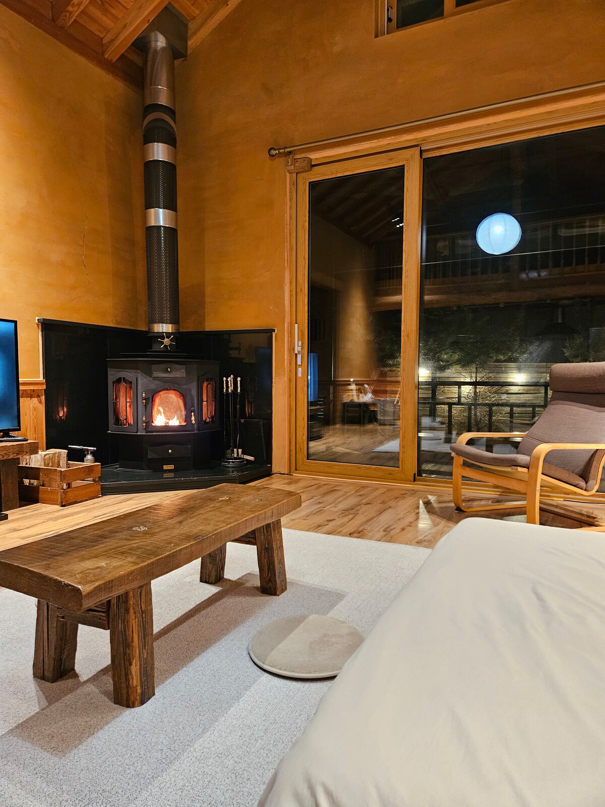 Evimiz Qanqvon əyalətinin Yonvol şəhərində, Tevasanq yaxınlığında yerləşir və avtomobillə 15 dəqiqəlik məsafədə Çonryonpo, Canqneunq, Qosi Mağarası, Donqseo Bağı Yeondanqvon, Radio Ulduz Muzeyi, Foto Muzeyi və Bieulmaro Rəsədxanası (buraya şatlla gedə bilərsiniz) yerləşir. Koreya yarımadasından 25, Gənclər üçün Ay Y Parkından isə 35 dəqiqəlik məsafədədir. Uşaqlı ailələr 4 nəfər və maksimum 3 böyük qonaqlaya bilər. Bu, loft üslublu villadır. Payızdan yaza qədər qapalı buxarıdan zövq ala, eləcə də rahat atmosferi olan qonaqlama yerinin qarşısındakı bağda və barbekyuda otura bilərsiniz. İki müstəqil məkan işlədirik. Dincəlmək istəyənləri salamlayırıq. * Pulsuz götürmə xidməti * Pulsuz barbekü xidməti * Oduncaq mövcuddur * Otaqda buxarı oktyabr-mart aylarında işlədilir * EV şarjı mövcuddur