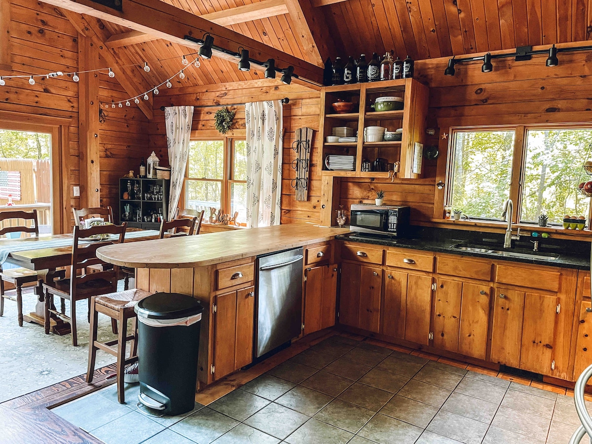 Come relax and enjoy lakefront living in this 2 bedroom, 1 bath house on Boone Lake. 1st BR offers a king size bed and 2nd BR offers a twin over full bunk bed with a trundle. Enjoy open concept living with beautiful views of the lake. Inside you will find wifi, streaming on 3 tvs, Wii, board games, puzzles and books. Relax on the large deck, enjoy yard games or use the 2 kayaks, canoe or paddle board. A perfect place for a relaxing family getaway. Ring camera at front door only for security.