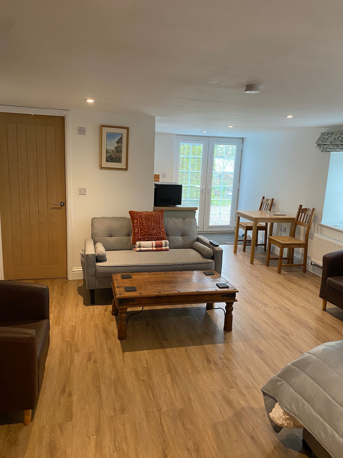 Ev Ferma Samanlığı evimizin bir hissəsidir, həyət bağına açılan gözəl samanlıqdır. Sahələr və bağçalarla əhatə olunmuş yoldan keçmirik. Bura dinclik və sakitlik, yaxud da ölkə qonaqlaması üçün dostlarınız və ya ailənizlə bir araya gəlmək üçün ziyarət etmək üçün ideal yerdir. Ev geniş, rahat, mətbəx/yemək sahəsi və açıq od olan oturma otağıdır . 4 cüt yataq otağı, bir hamam, iki duş və aşağıda ayrıca qarderob otağı ilə hər kəs üçün kifayət qədər yer var.