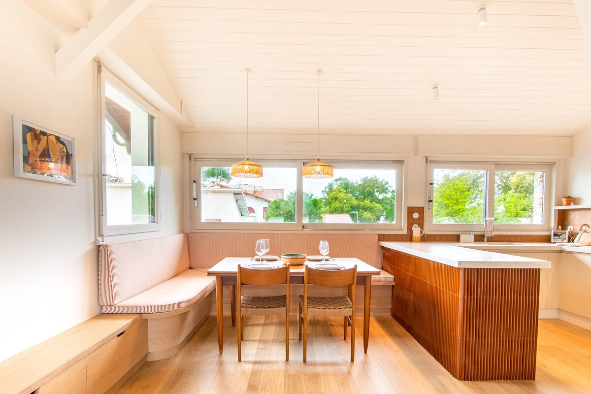 Kiçik bir ərazinin məkanını gəzmək asan deyil, lakin bəzi memarlar möcüzələr yaradır. Cənub və qərblə üzbəüz, yüksək səviyyəli materiallarla tamamilə təmir edilmiş müasir mənzil. Vərəqələr və dəsmallar da daxildir !! Bask Ölkəsinin dağlarının və dünyanın ən yaxşı sörfinq yerləri olan çimərliklərin heyranedici mənzərələri olan terrasdan da zövq alacaqsınız. Hamısı 5 dəqiqəlik məsafədə: parkinq, restoranlar, barlar, sörfinq icarəsi ..