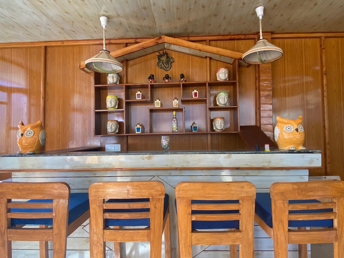 ChaletShanagManali-də təbiətlə lüzumsuz bir bağ yaşayırsınız, çünki möhtəşəm qarlı dağlar və verdant vistaları bütünlüklə sizi əhatə edir. Oozing rustic taxta cazibədarlığı, torpaq rəngli paletlər və mənzərəli açıq havada yemək yerləri ilə birləşən bu dəbdəbəli möhtəşəm villanın dörd yataq otağı var. Sauna seansında əylənərkən yerə qar dənəciklərini seyr edin və ya gülüş və hekayələr paylaşmaq üçün buxarı ilə sevdiklərinizlə qucaqlaşın.