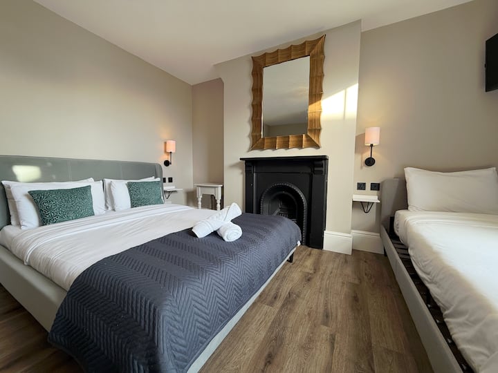 Bütün 3 qonaq üç yataq otağımızda geniş ölçülü ikinəfərlik çarpayı, ayrıca birnəfərlik çarpayı, çay və qəhvə hazırlama ləvazimatları, Netflix, Prime Video və Disney+ televizoru, səfeh sürətli Wi-Fi və ayrıca hamam otağı var.