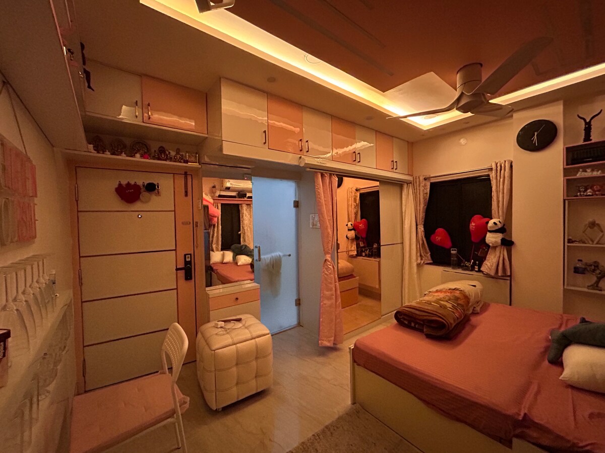 Ev teatrı atmosferi ilə birinci mərtəbədə rahat 1BHK! Film gecələri üçün böyük proyektor, soyuducu, mikrodalğalı soba, su təmizləyicisi və bütün zəruri ləvazimatlarla tam təchiz olunmuş mətbəxdən zövq alın. Yataq otağında rahat, 180-220 sm ölçülü çarpayı, kondisioner və geniş saxlama yeri var. Paltaryuyan maşın, təmiz hamam otağı və vacib ləvazimatlar, Wi-Fi və rahatlığınız üçün öz-özünə giriş daxildir. Ev heyvanları üçün uyğundur və cütlər, tək səyahət edənlər və ya uzun müddət qalmaq üçün mükəmməldir. Şərikli məkanları olmayan ayrıca mülk. Yerli şəxsiyyət sənədləri qəbul edilmir.