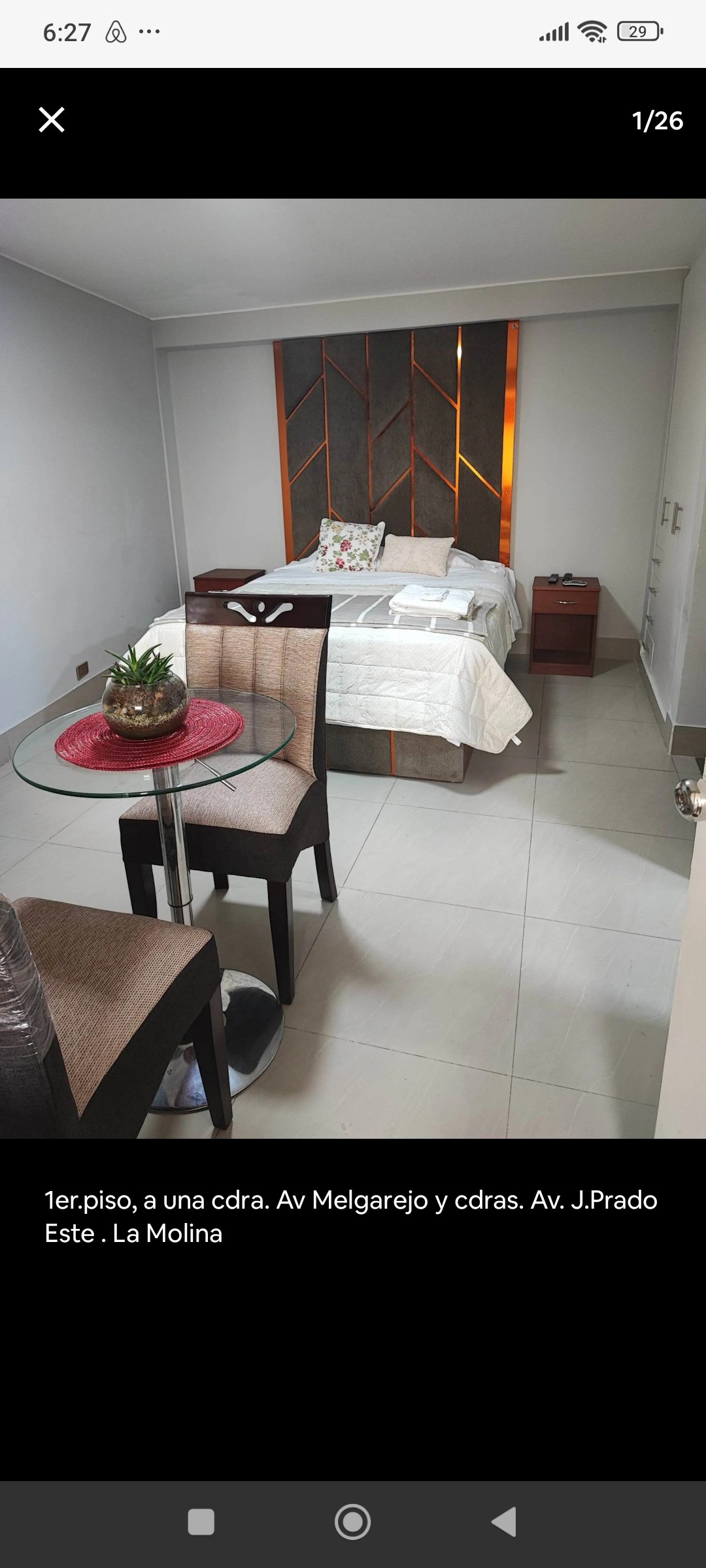 habitación en primer piso, baño privado, cama Queen, frigobar, microondas y hervidor. Espaciosa, zona tranquila, cerca Av. Melgarejo, sede principal del BCP, a tres cuadras Javier Prado (óvalo Huarochiri), estación buses. Desconecta de tus preocupaciones en este espacio tan amplio y sereno. Cuidamos mucho de la tranquilidad, respeto y limpieza del lugar. Uso de lavadoras y secadora (área común) una vez por semana. cocina compartida para estadías largas