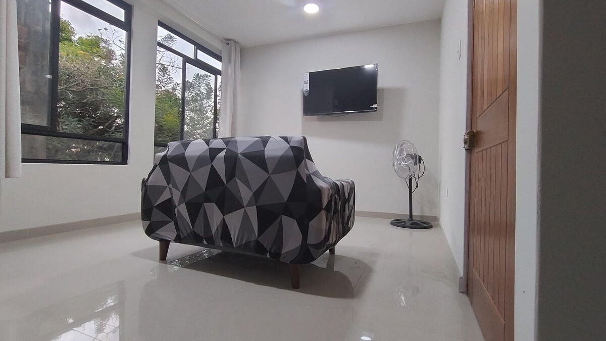 Disfruta de la Selva Central con la comodidad que mereces. Nuestro departamento para 4 personas es el refugio perfecto tras un día de Tours. Olvidate del calor, contamos con Aire Acondicio, relájate en nuestro balcon privado, viajaanado. Viaja sin preocupaciones, sabemos que tu vehículo es importante, a media cuadra hay una cochera publica, grande y segura con pago. Ubicacion estratégica. Estamos a unos pasos de la Isla del Encanto para footing, paseo en cuatrimotos y disfrutar de las aves