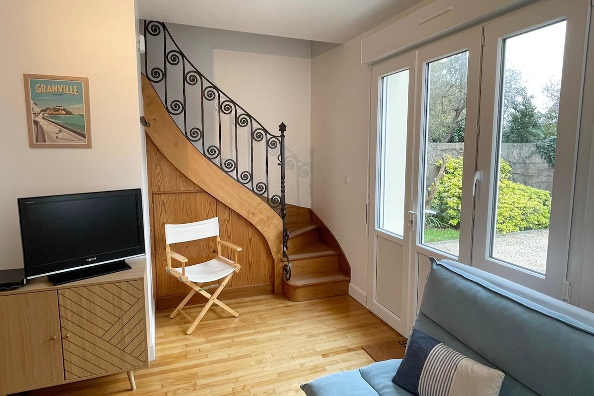 Çausey adalarının qarşısındakı böyük ailə çimərliyindən 100 m məsafədə GR 223 (Tour du Cotentin) ərazisində yerləşən evin birinci mərtəbəsi, yataq otağı, hamam otağı və tualetdən ibarət qonaqlama yeri. Yaxınlıqdakı Dior Muzeyi, Talassoterapiya, bütün ümumi mağazalar. Mont-St-Mişel bir saatdan, Qranvildən 2 km-dən az məsafədədir. Su idman növləri, piyada balıq ovu (Avropada ən böyük gəzintilər) və yürüyüş tətbiq olunur. Vacib delfin qəsəbəsi.