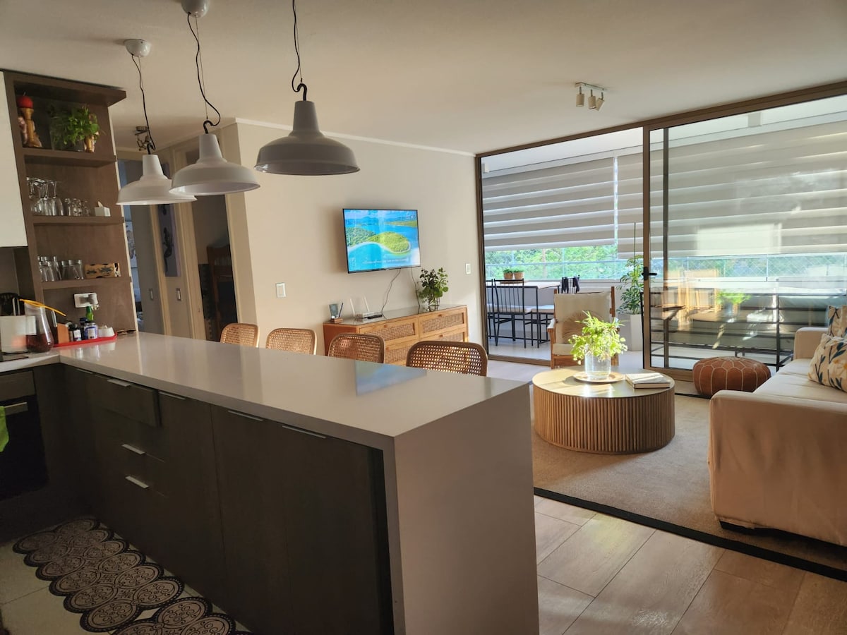 Vitakuradakı sığınacağınıza xoş gəlmisiniz Sizi Santyaqonun ən gözəl və təhlükəsiz bölgələrindən birində yerləşən bu rahat və işıqlı mənzildən zövq almağa dəvət edirik. Buradan Parque Arauco, Open Kennedy, Parque Araucano və Alman Klinikasına piyada gedə bilərsiniz. Mənzilin dizaynı özünüzü evinizdəki kimi hiss etməyiniz üçün düşünülüb: istədiyiniz hər şeyi bişirməyiniz üçün tam təchiz olunmuş, taxtadan hazırlanmış inteqrasiya edilmiş mətbəx; çox rahat king ölçülü çarpayı və üstü örtülmüş divan-çarpayı var.