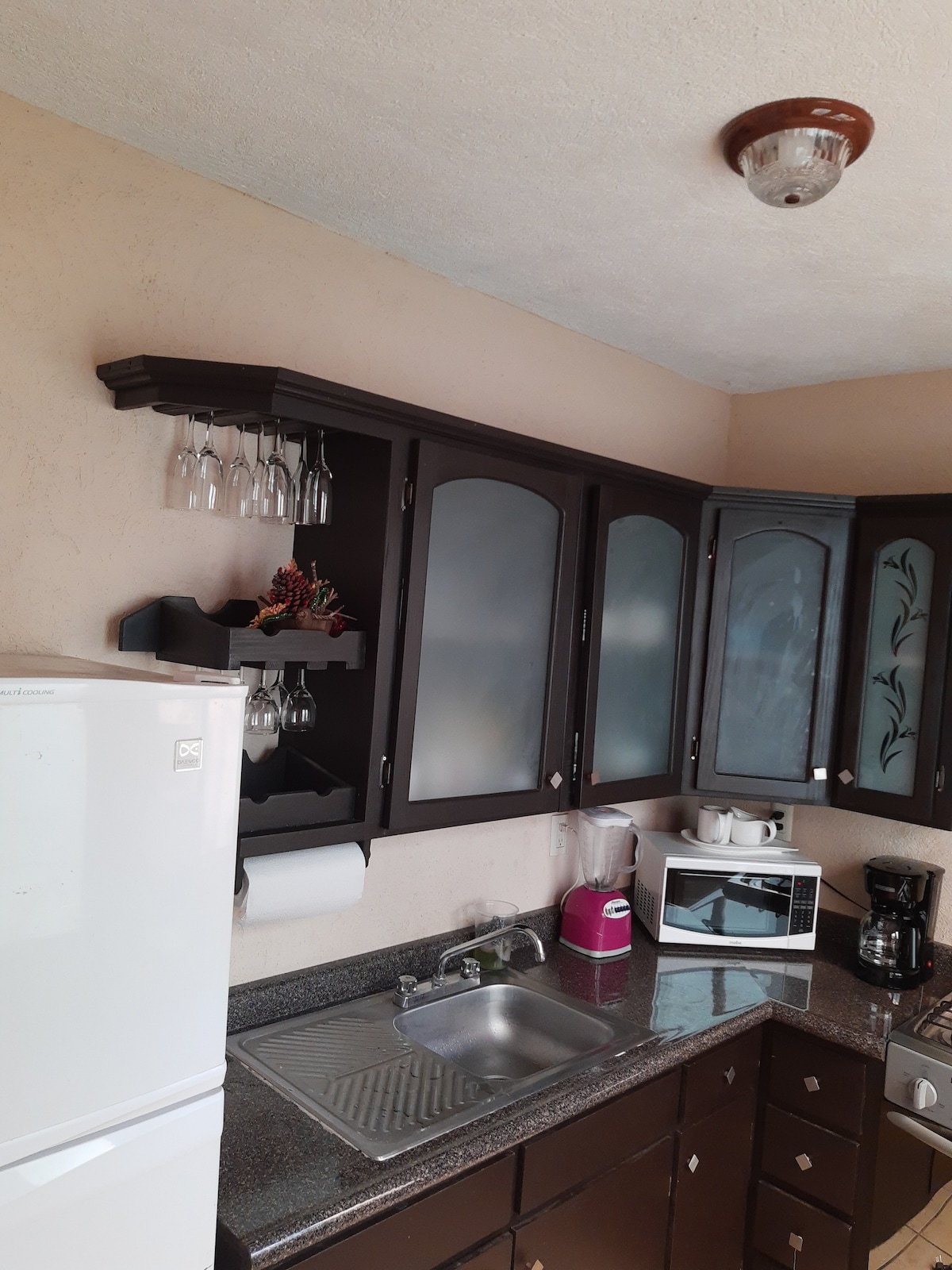 La casa está diseñada para hacer eventos familiares como comidas o reuniones ya que cuenta con una barra con bancos y espacio para recreación. Ninguno de esos servicios se cobra extra, ya están incluidos en el precio por noche. Además de que pueden pernoctar y descansar gratamente en un ambiente de pueblo pequeño el cual está lindo para recorrer.Ubicado cerca del camino a Uruapan, Zirahuen y a unos minutos Patzcuaro. Nota: Para ir al baño hay que atravesar el patio.