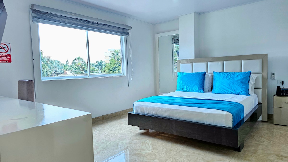 Lüks səthləri, 150-179 sm ölçüdə çarpayısı, qəssabları, ağıllı TV, kondisioner, ayrıca hamam otağı, dolabı, noutbuk seyfi, termo-qast pəncərəsi və iki stulu olan masa olan otaq. Ev heyvanlarına icazə verilir, lakin əlavə gündəlik xərcləri olduqda bizdən soruşun.