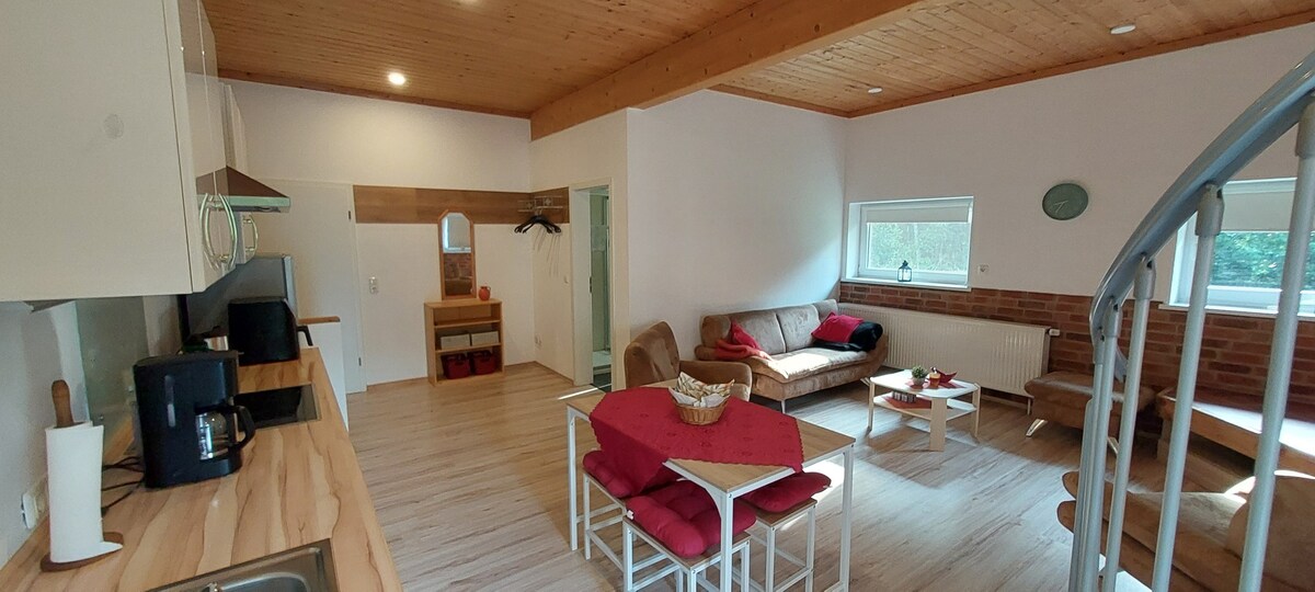 120 kvadratmetrlik mənzil 1898-ci ildən fermanın yarısıdır və təmir olunub. Sahələrlə əhatə olunmuş ev tənha yerdədir və təbiətdən və sakitlikdən zövq almaq üçün idealdır. Mənzilə terrası olan bağça və istəyə uyğun olaraq barbekü mövcuddur. Cənub terrasından yaxınlıqdakı Wiehngebirge-ə qədər sahələri görə bilərsiniz.