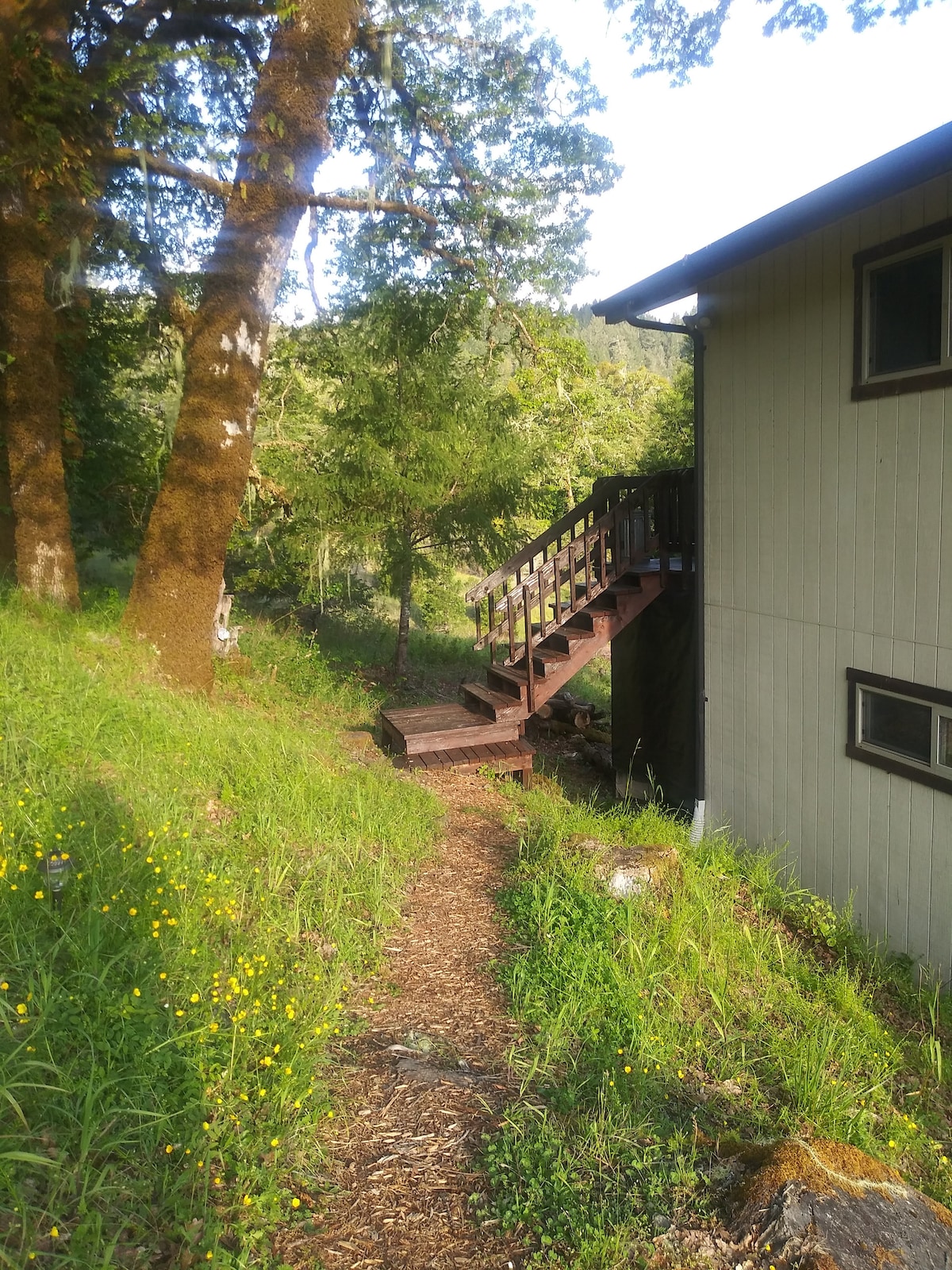 Şimali Kaliforniya Sahilinin Redvud ağaclarında "Nəhənglər PROSPEKTİ" ndən 5 dəqiqəlik məsafədə yerləşir və Eel çayı (Kaliforniyanın əsas qızılbalığı çalışır) və qədim Scotia Bluffs ilə əhatə olunub. Sizi "Qırmızı ağaclarda Oazis" ə dəvət edirik. Ayrıca, tənha Studiya evi, mətbəx və hamam-tualet. Qırmızı ağaclarda yerləşən vahəmizdə ayrıca xüsusi Tarixi Yol (köhnə 1 Hwy) var, bu da yarıq, cığır və parka aparır. Simsiz internet və daha çoxu!!!