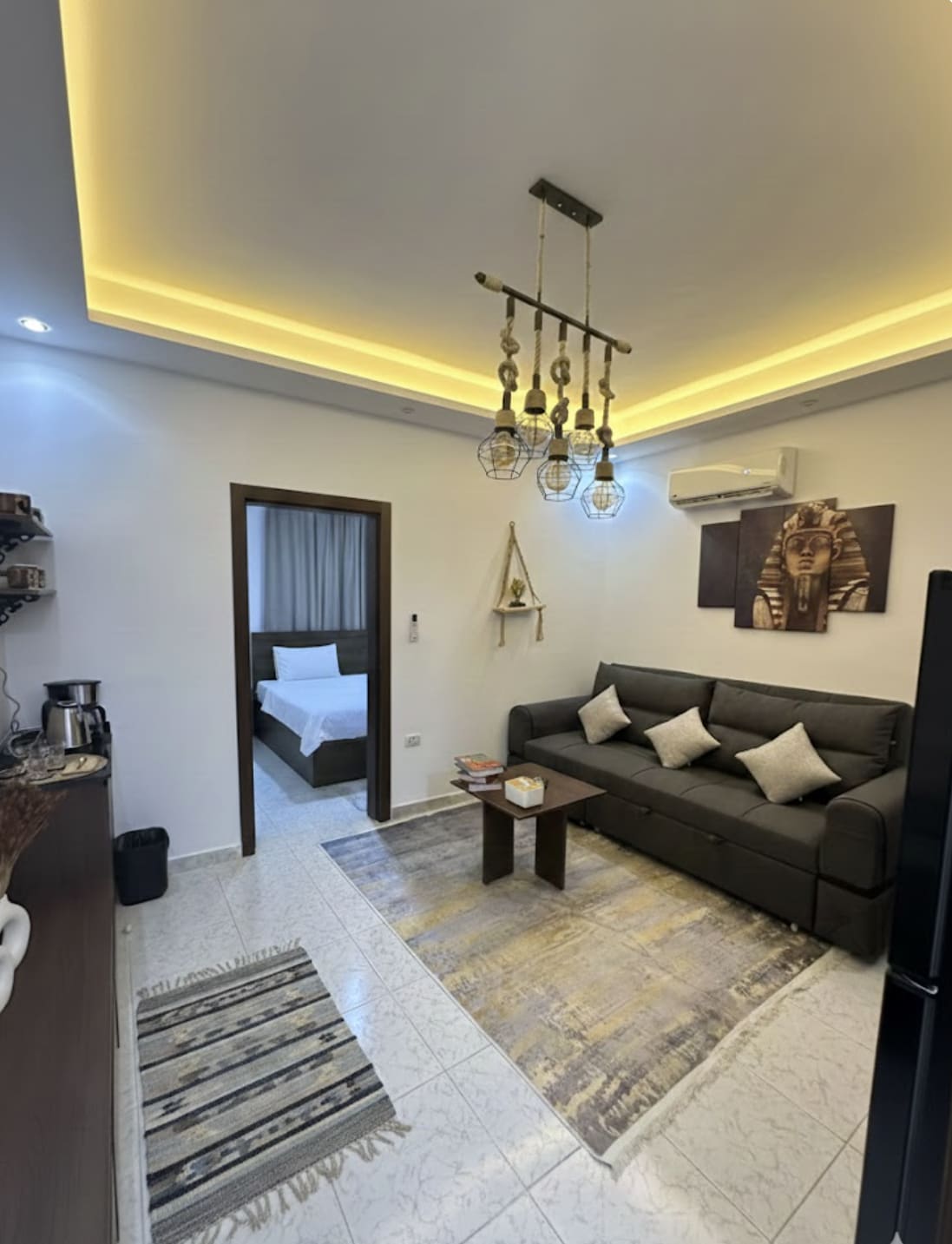 Mərkəzdə yerləşən bu məkanda dəbli və romantik təcrübədən zövq alın. Xəyal Çimərliyinin qarşısında, Hurqada turistik Kəndlər küçəsindən cəmi 50 fut məsafədə Çox sürətli Wifi, Netflix və youtube ilə müasir mebel Bu mənzildə xüsusi mətbəx avadanlıqları, Mikrodalğalı soba, Paltaryuyan maşın, Türk qəhvə avtomatik maşını, çaydan və tam qəhvə və çay tamamlayıcısı var Həmçinin ütü və ütü masası və Uzaqdan işləmək üçün masa Sevənlər üçün romantik bir yataq otağı və bir Divan Çarpayı