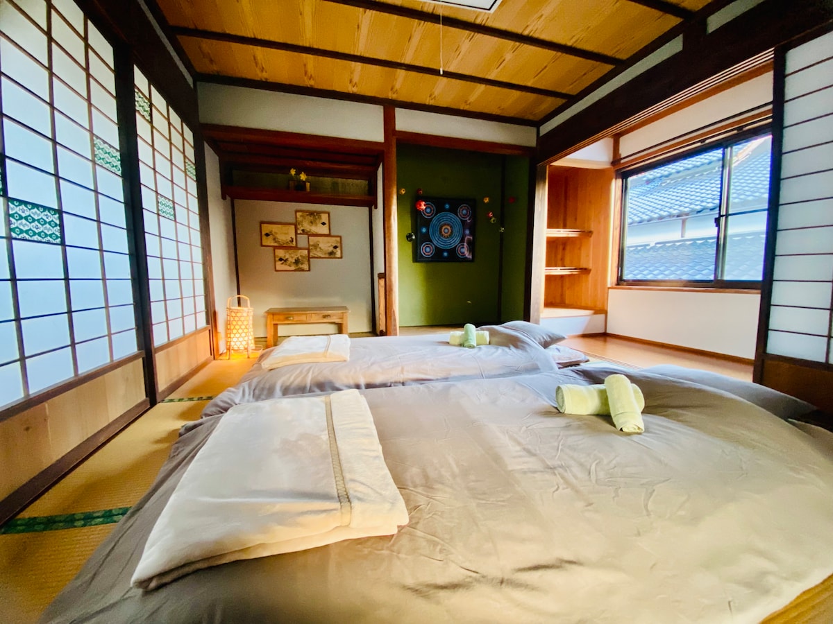 Bu ev ailə və ya qrup gəzintisi üçün idealdır.O, təpədə yerləşir və ikinci mərtəbə terrasından və otaqdan Fuqa körfəzinə baxan estetik villanı icarəyə götürmək tövsiyə olunur. Qonaqlar arasında məxfiliyi təmin etmək üçün 3 yataq otağımız + 1 yapon üslubunda otağımız var.Hər yataq otağında iki Simmons çarpayı quraşdırılıb.Həmişəkindən fərqli mühitdə zərif vaxt keçirin. * Aşpazlıq və s. ilə bağlı plan axtarırsınızsa, veb-saytımızdan bizimlə əlaqə saxlaya bilərsiniz."Awaji Island C-Side" axtarın.