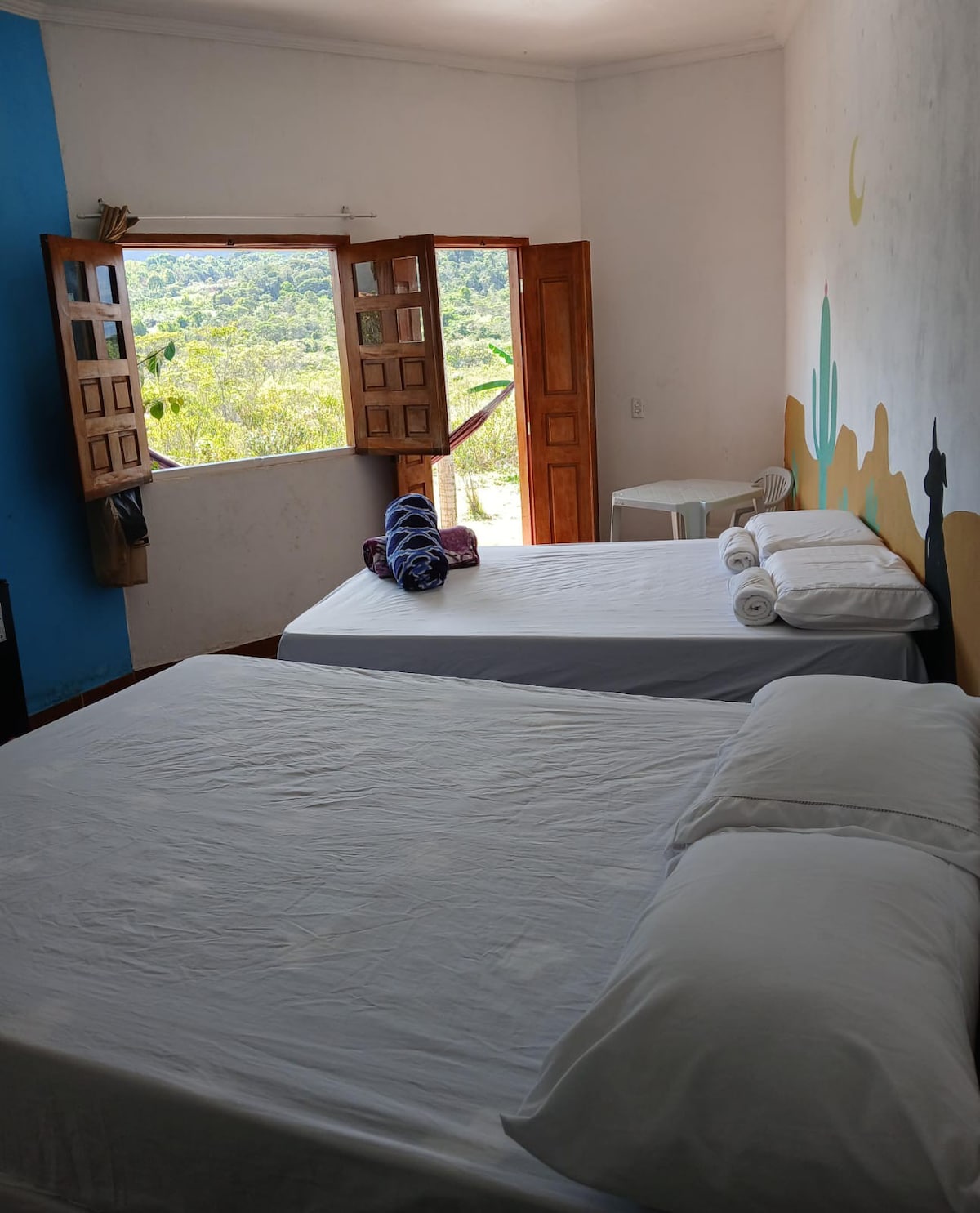 contamos com quartos compartilhados com quatro e com duas camas e também com quarto de casal, com acesso a wi-fi e café da manhã. estamos localizados no centro de Ibicoara, ponto de partida para as principais trilhas e pontos turísticos