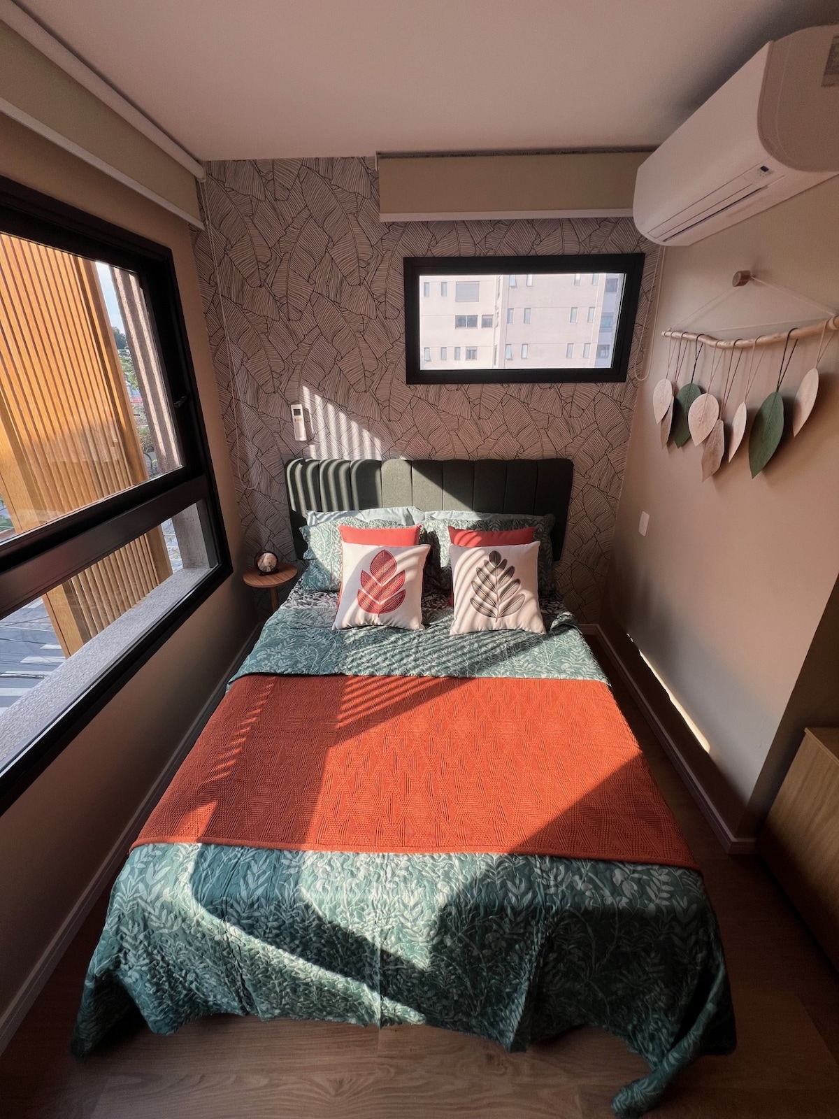 Qüsursuz şəkildə bəzədilmiş və incə detallarla dolu müasir studiya Moemanın ən arzuolunan ərazisində, Moema stansiyasından cəmi 6 dəqiqəlik piyada məsafədə və İbirapuera Parkından 900 metr məsafədə yerləşir. Cütlüklər, tək və ya işgüzar səyahətçilər üçün rahatlıq, üslub və praktikliyi birləşdirən ideal yer. Studiada çarpayı, premium Teka Profiline dəsti, kondisioner, sürətli Wi-Fi, 50 düymlük Smart TV, tam təchiz olunmuş mətbəx və yumşaq dəsmallar və tam imkanlarla zövqlə hazırlanmış hamam otağı var.