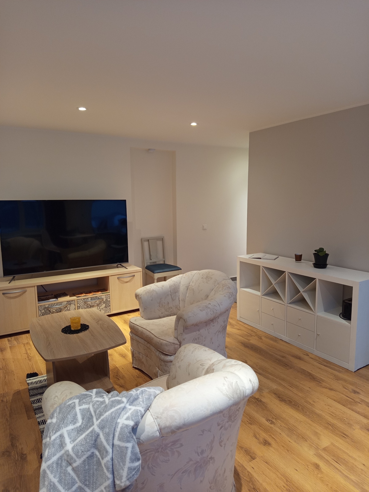 Mənzil sizə lazım olan hər şeyin olduğu geniş tərtibata malikdir - Mətbəxdə yemək bişirmək və nahar üçün texnika, kapsul qəhvə maşını + qəhvə kapsulları, elektrik çaydan, mikrodalğalı soba. Qonaq otağında qatlanan divan çarpayı, 55" televizor və internet. Yataq otağı qarderobu və qaralma pərdələri olan ayrıca otaqdır. Mənzil paltaryuyan maşın, paltar qurutma rəfi, saç feni və tozsoran ilə təchiz olunub Mənzil sakit bölmədə yerləşir, ticarət mərkəzinə, kinoteatra, ərzaq mağazalarına piyada məsafədə yerləşir Evin qarşısında pulsuz parkinq və kamera nəzarəti Avtovağzal 1,5 km məsafədə