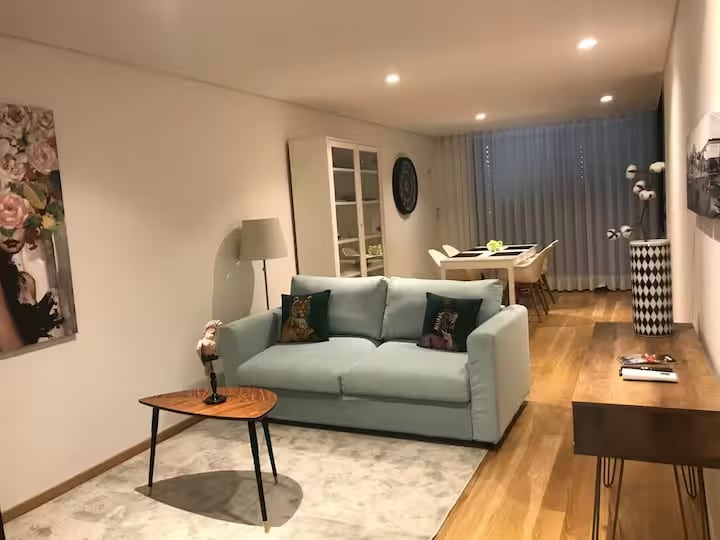 Binada lift və lüks imkanları olan, Praça da República-ya baxan füsunkar, gözəl yeni mənzil. Köhnə şəhərin mərkəzinə piyada 10 dəqiqəlik məsafədə və restoran, kafe, ərzaq, nəqliyyat və digər yerlərdən uzaqda! 4 böyük, yaxud 4 böyük və 1 uşaq üçün idealdır. (2 yataq otağı və qonaq otağında divan-çarpayı). Bu əmlak səfəriniz üçün mükəmməl deyilsə, profilimdəki digər elanlarıma baxın.